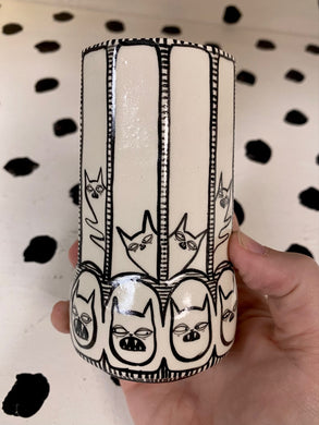Maliya is a ceramic artist from Rochester NY who creates small batch pottery. She regards functional pottery as a unique opportunity for a piece of fine art to form a personal relationship with someone. It is something that is loved and held, that wears with time and becomes part of a person's daily life. Maliya applies illustration and narrative techniques to her ceramics as a vehicle for forging this relationship.