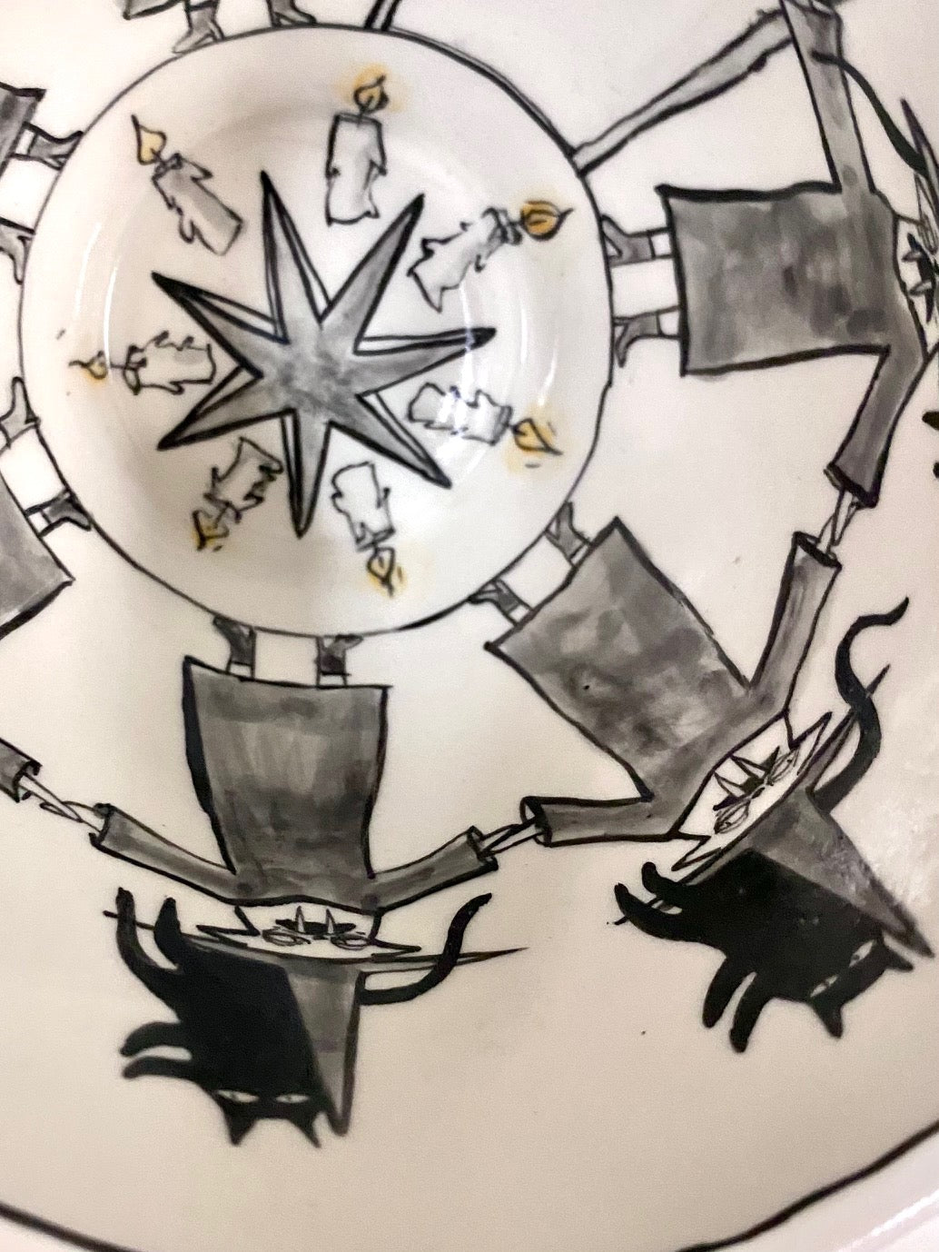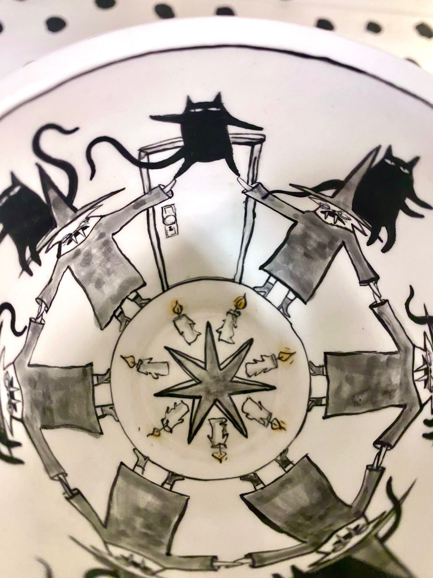 Please note these pieces are handmade and are not perfect! The rim might not be perfectly round, there might be a small smudge where I had underglaze on my finger. This is the beauty of handmade work- these pieces are sturdy but they have character :)