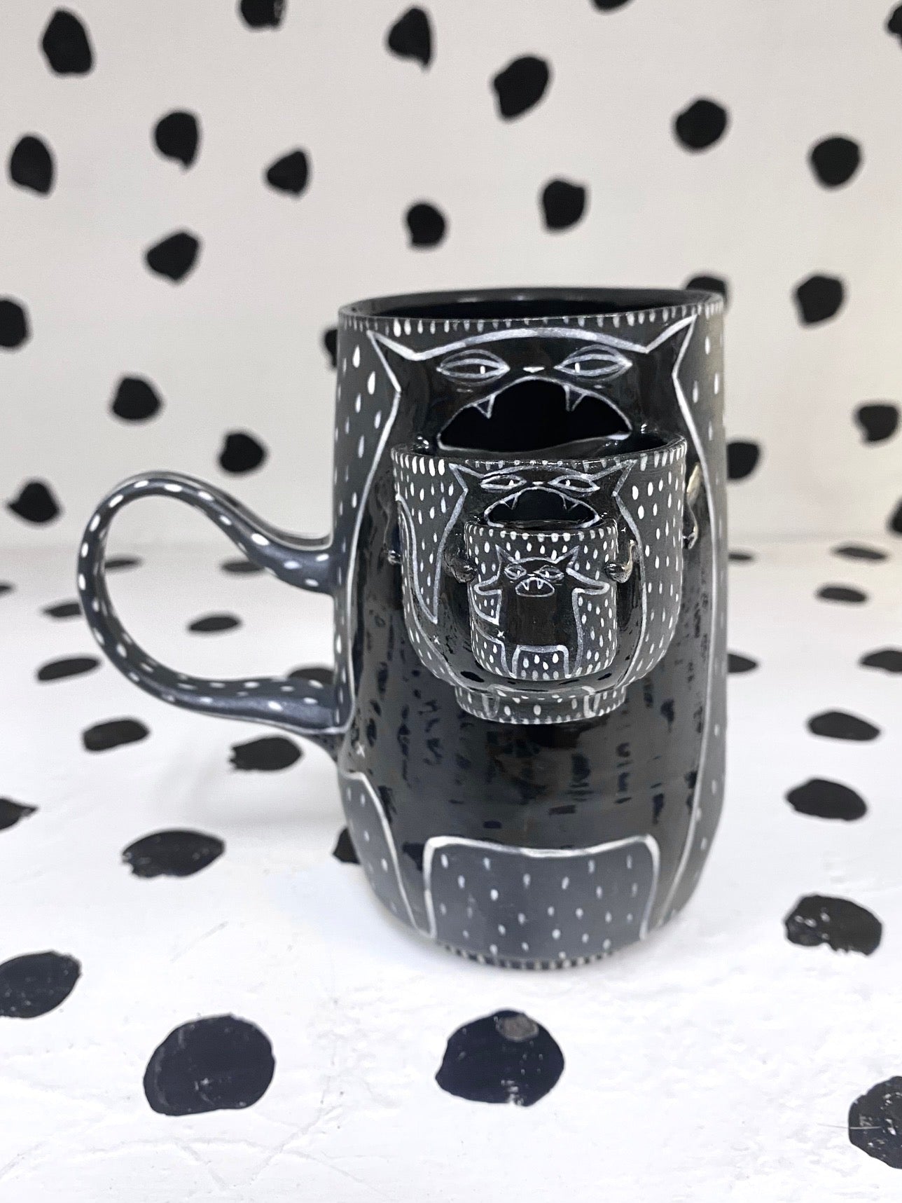 • Load image into Gallery viewer, Black Porcelain Double Barf Mug