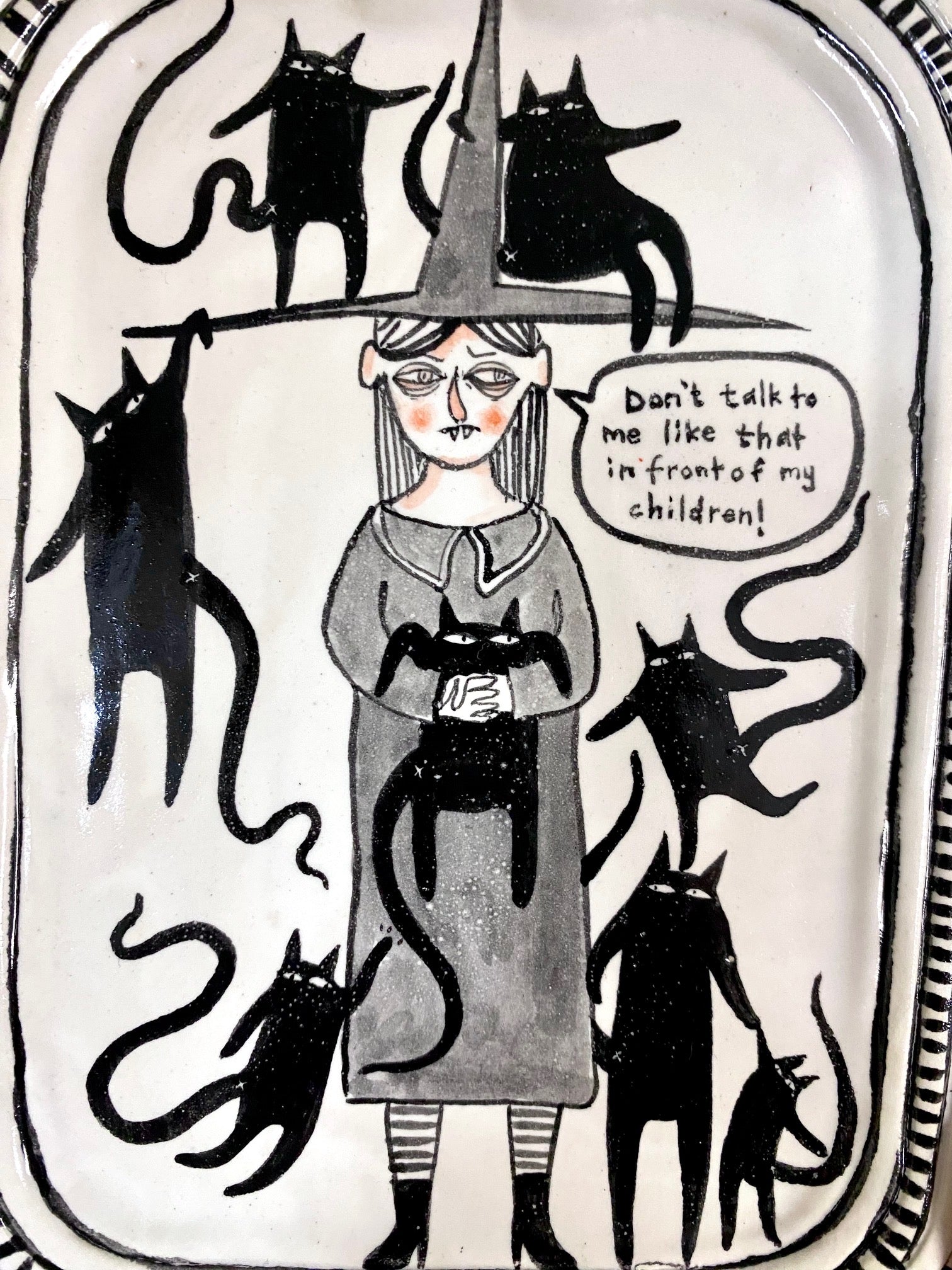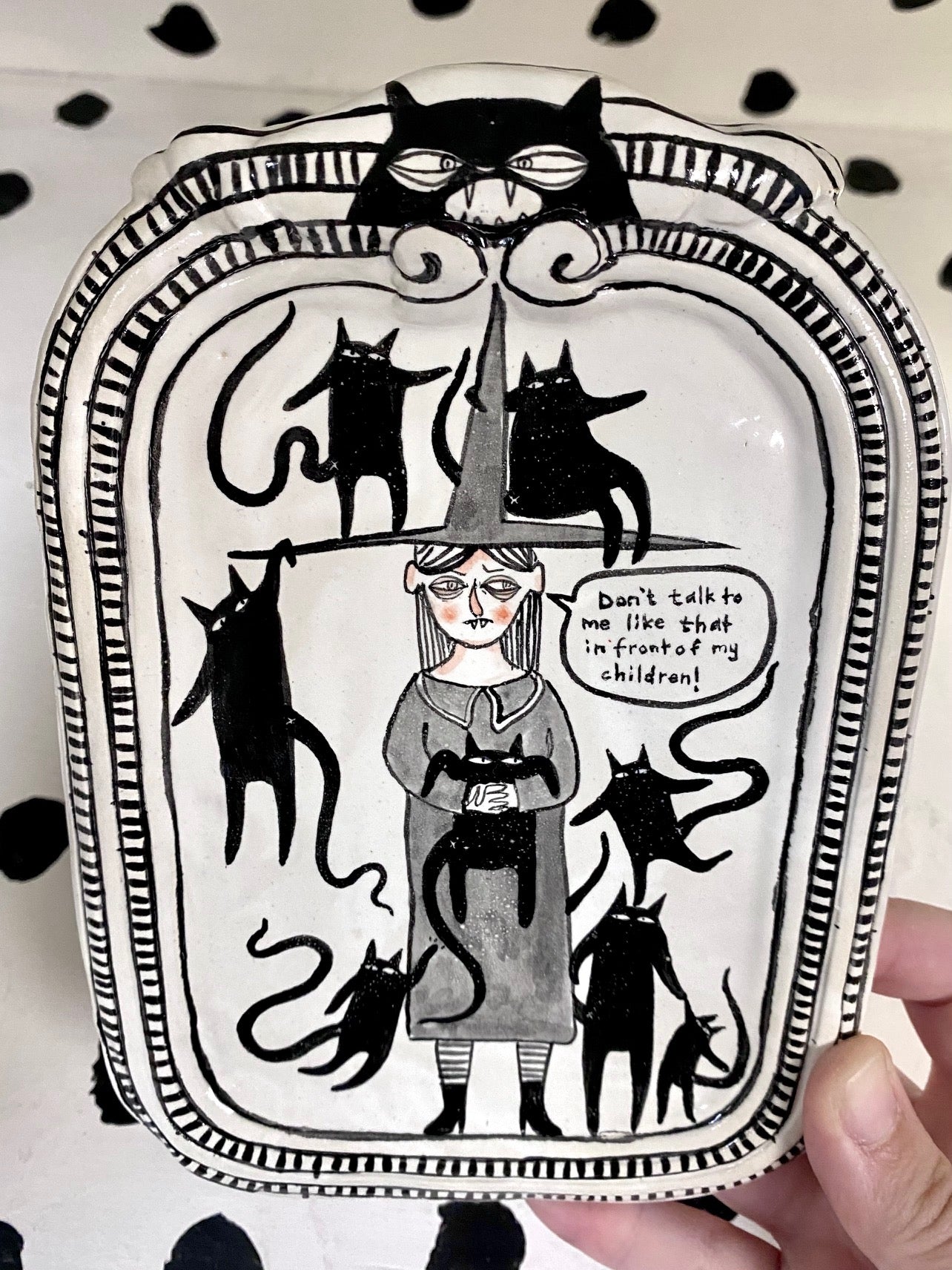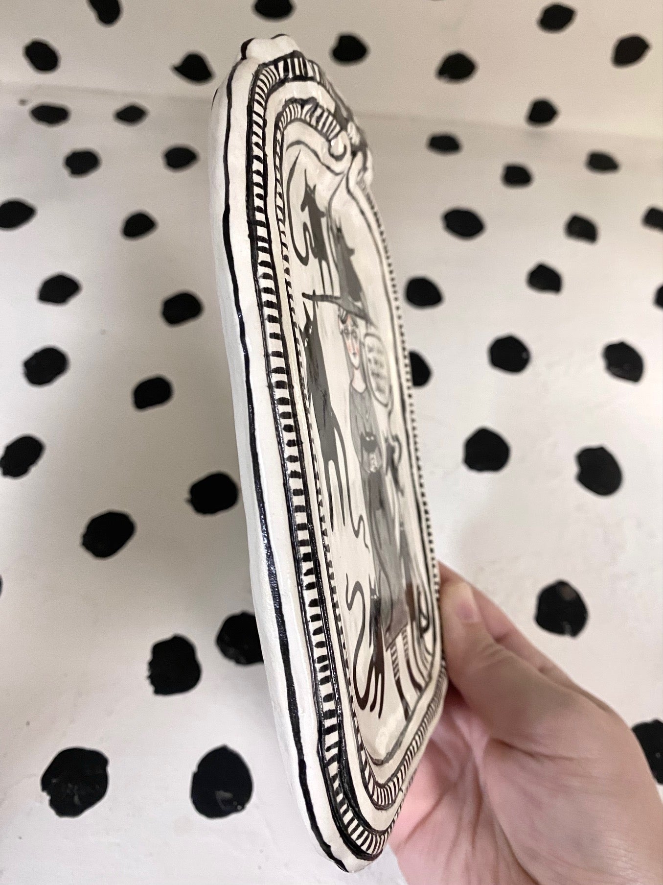 Please note these pieces are handmade and are not perfect! The rim might not be perfectly round, there might be a small smudge where I had underglaze on my finger. This is the beauty of handmade work- these pieces are sturdy but they have character :)