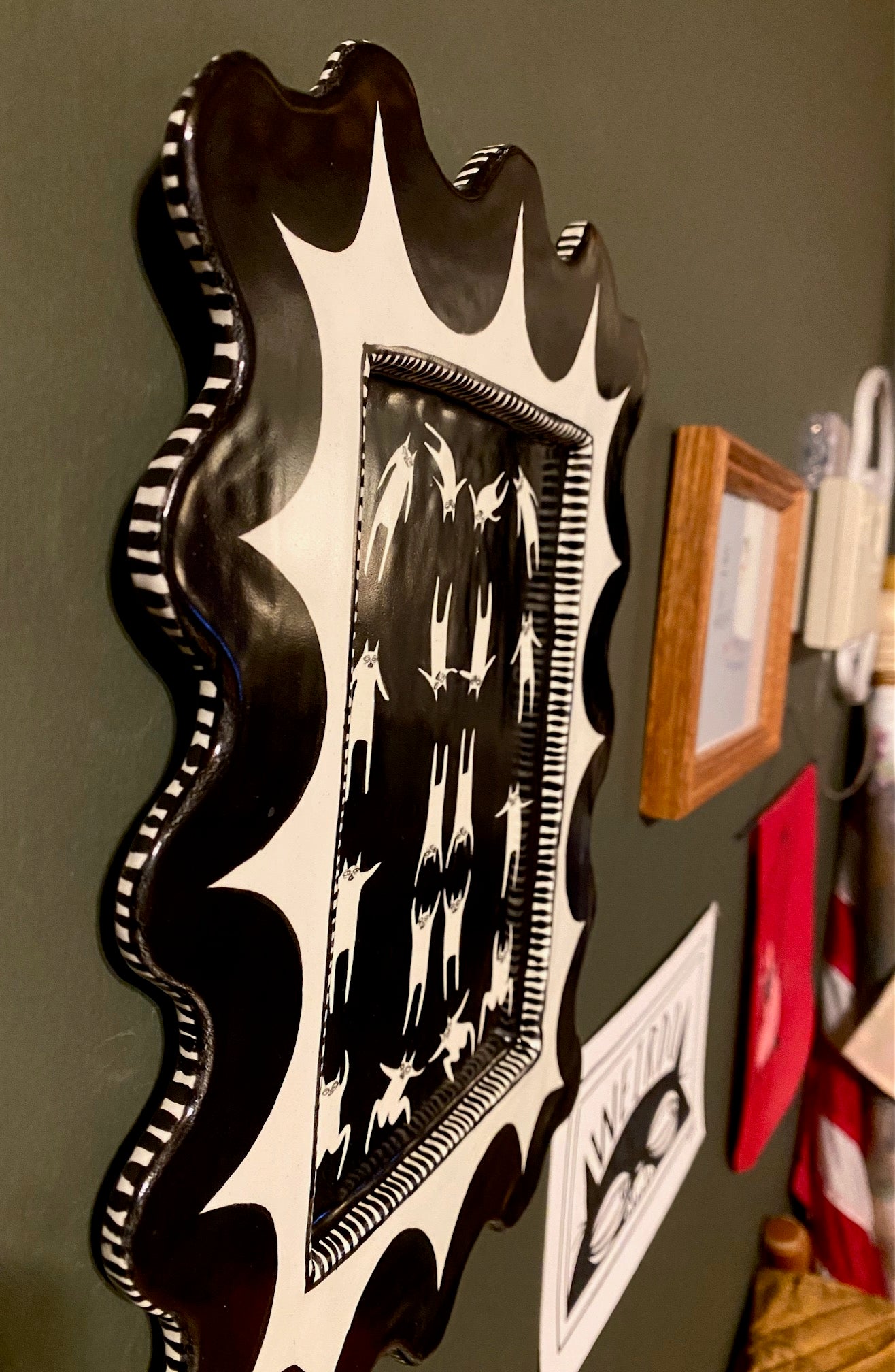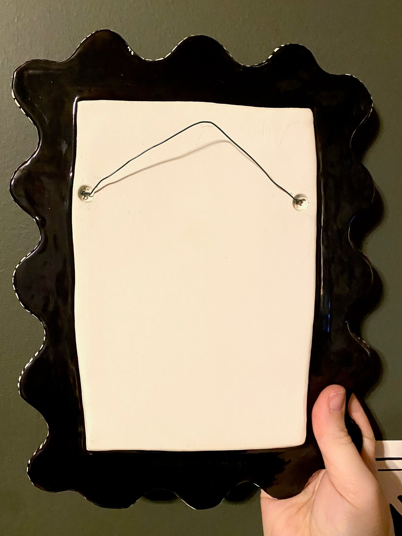 Handmade and hand painted stoneware with majolica wall hanging. About 8.5x11x1, has wire on back for hanging.