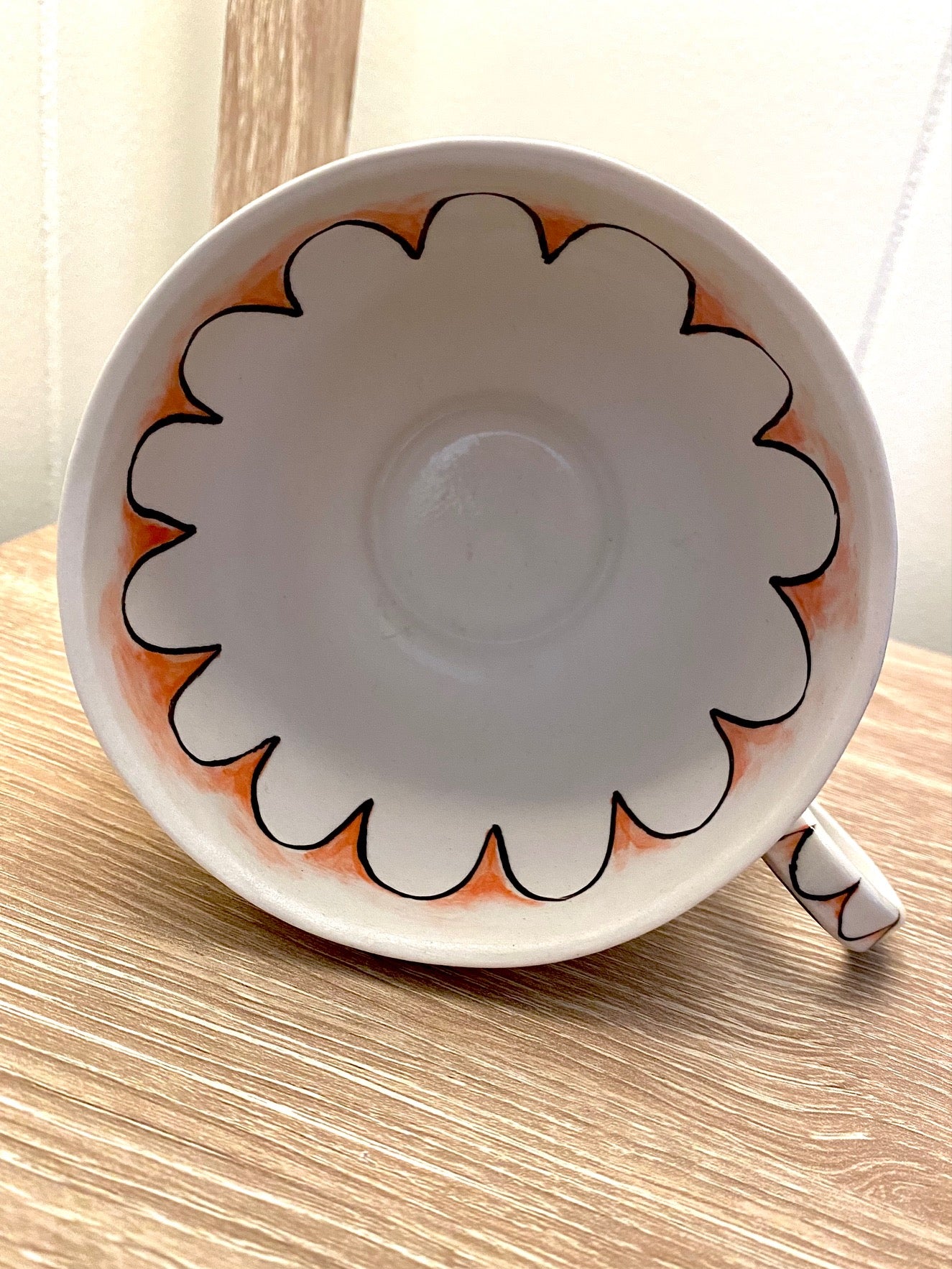 Please note these pieces are handmade and are not perfect! The rim might not be perfectly round, there might be a small smudge where I had underglaze on my finger. This is the beauty of handmade work- these pieces are sturdy but they have character :)