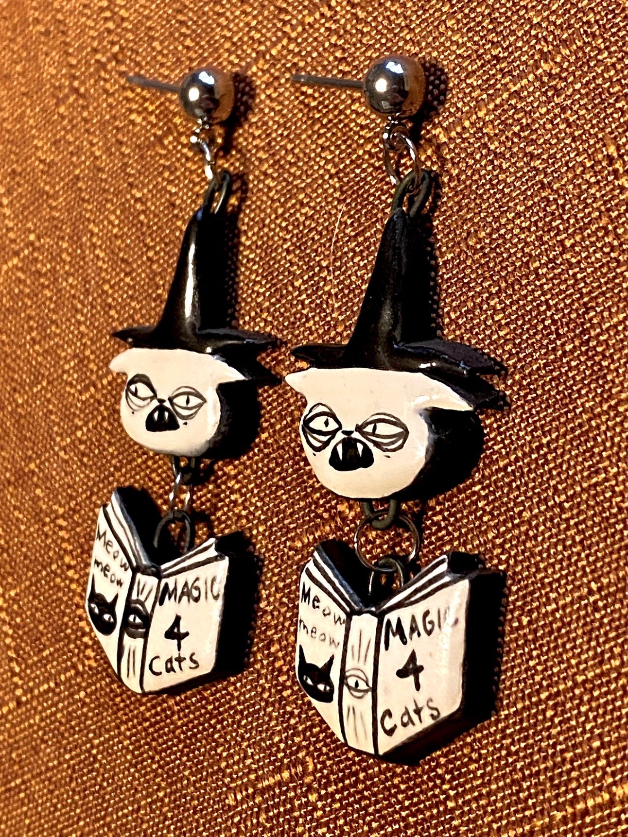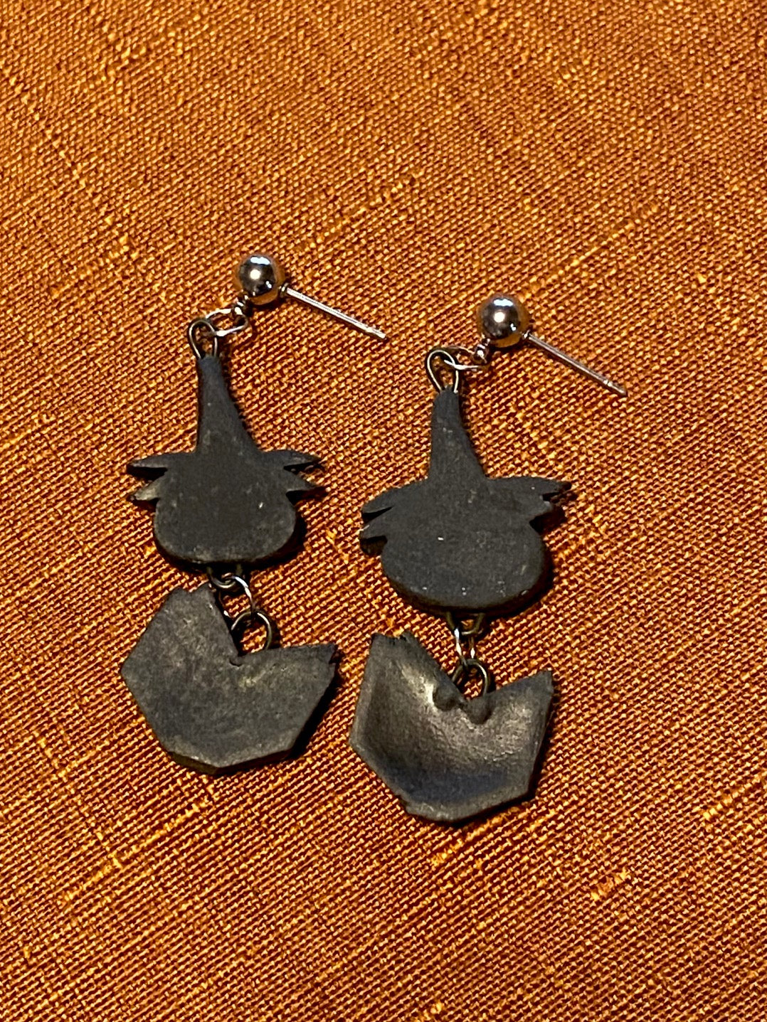 Handmade stoneware earrings with majolica and luster decorations. Finished with stainless steel nickel free posts.